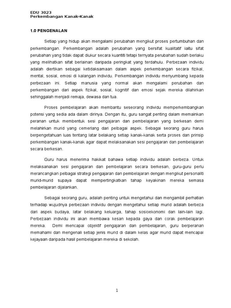 Perkembangan Kanak Kanak Edup3023 Perkembangan Awal Kanak Kanak